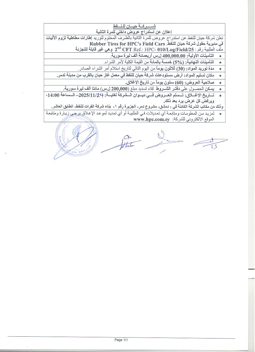 For Local Bidders: (400,000) Syrian Pounds. |