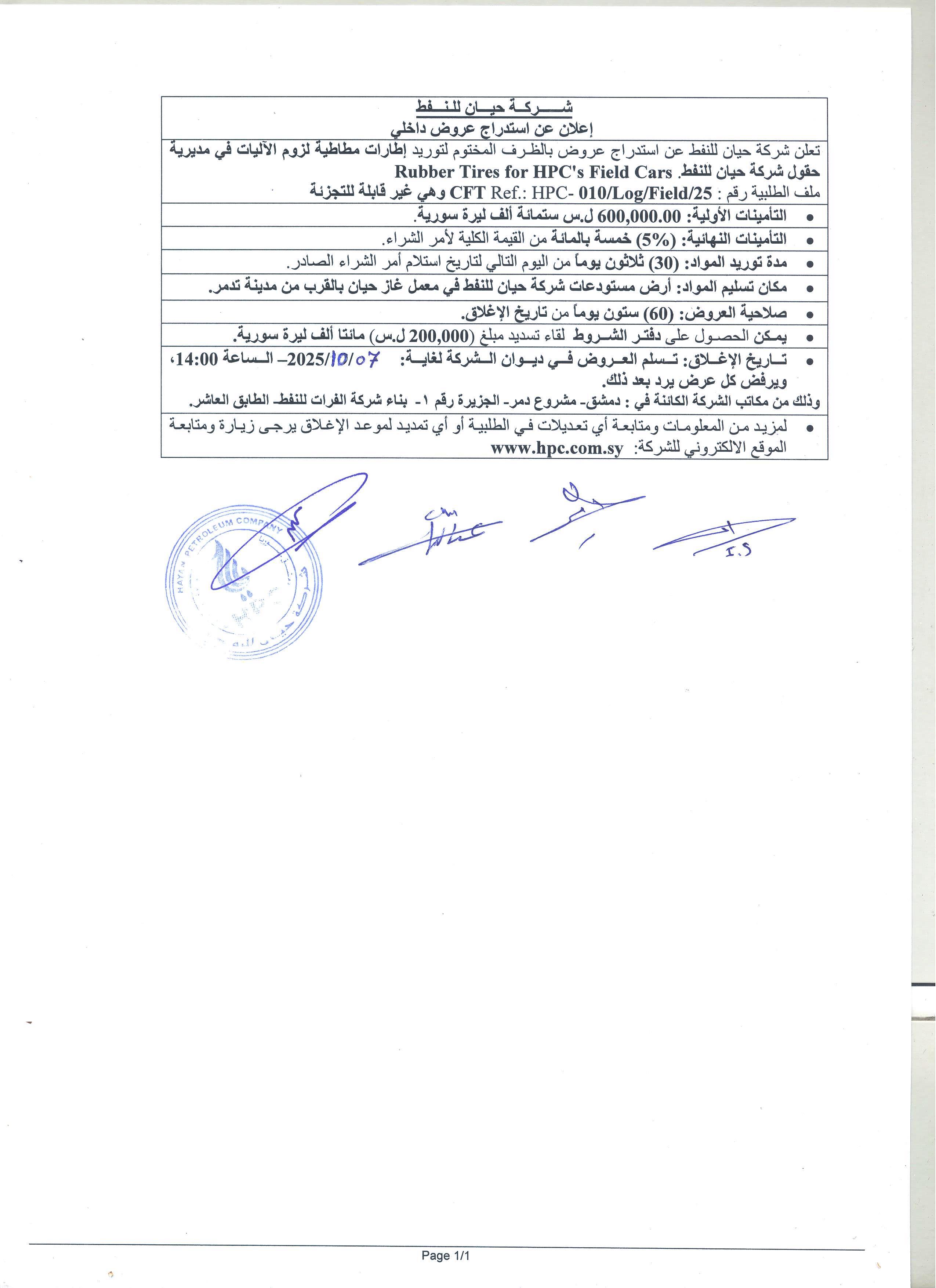 For Local Bidders: (2,700,000) Syrian Pounds. |