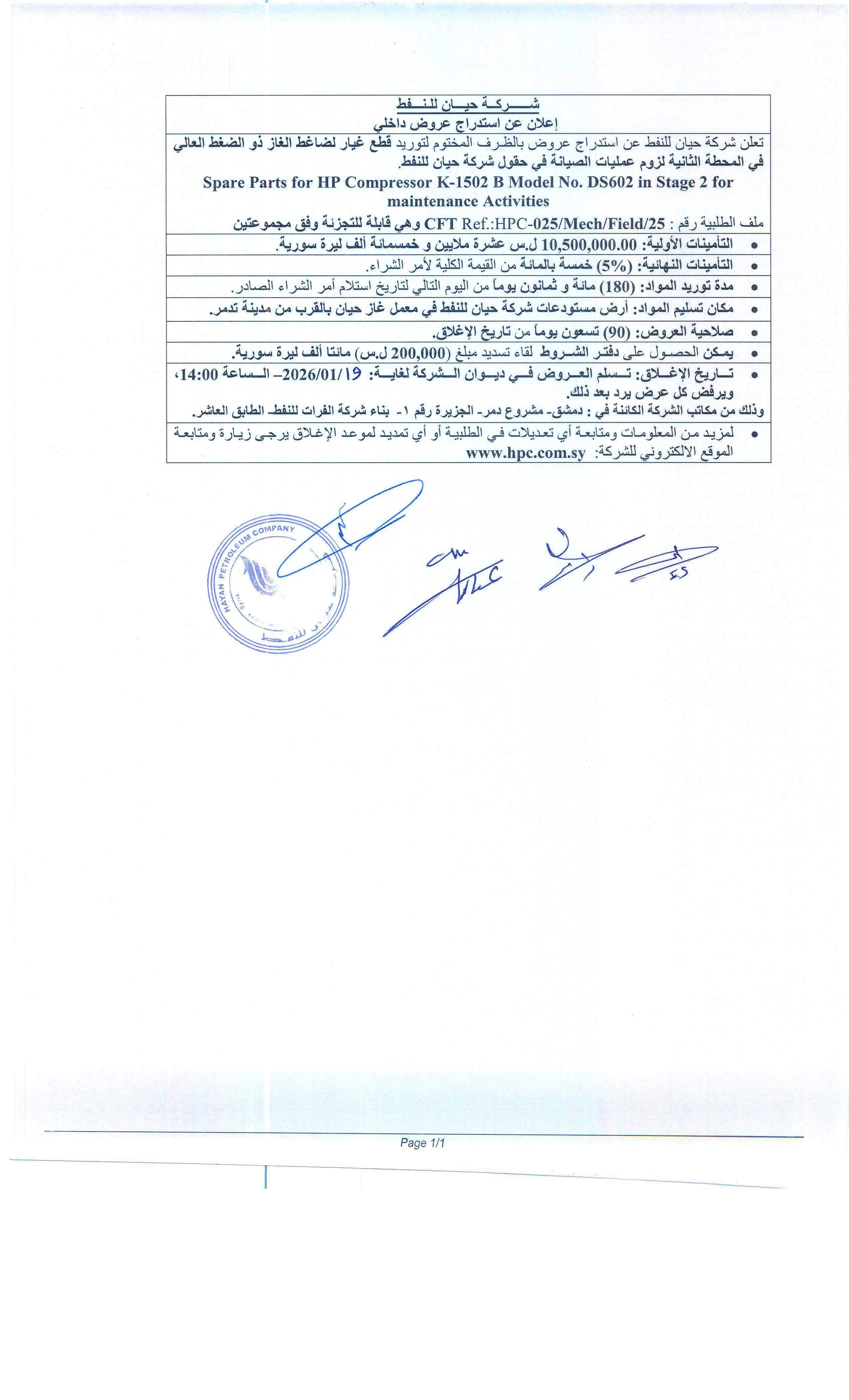 For Local Bidders: (1,000,000) Syrian Pounds. |